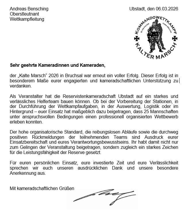Dank an alle Helfer und Unterstützer KM 26 Andreas Bensching 6. März 2026 Allgemein 0 Beitragsnavigation VorherNachher